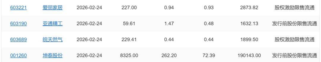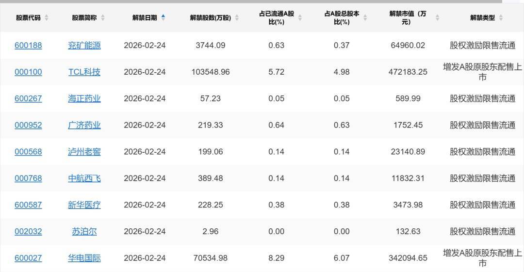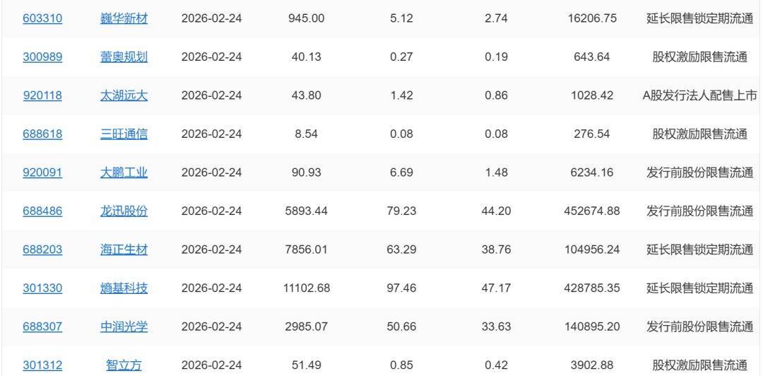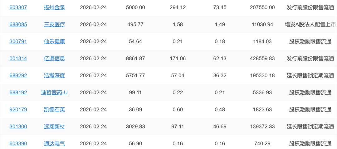 【限售解禁】