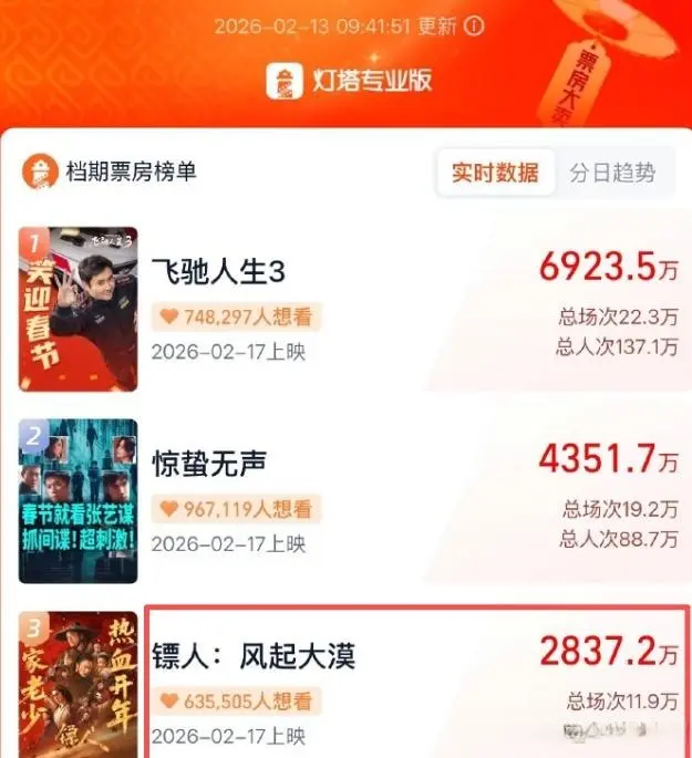 今年春节前,《镖人》是热搜上出现频率最高的电影之一,不是因为好看,是因为太“热闹”:吴京跳舞上热搜,陈丽君摔哭被截成GIF,李连杰15分钟戏份被说浪费,连多尔衮后代这种话都冒出来了。7亿成本拍的片子,上映前光预告就看了十来遍,结果大年初一走进影院的人,比预想少了一大半。